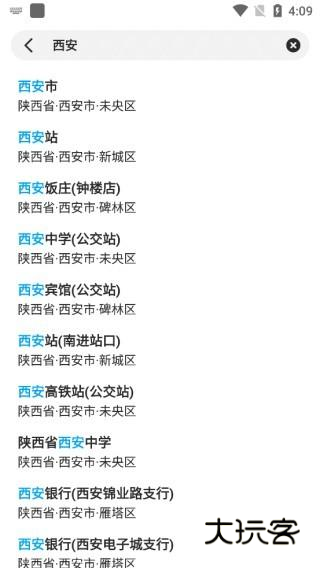 3、以西安为例,输入西安后就会出现一些位置,可以点击,如未央区