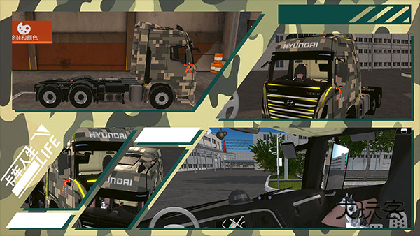 玩家可使用改装系统自由更换车身颜色、前灯、轮胎、贴花与动力系统,打造属于个人的专属卡车。不同部件的搭配不仅影响外观,还可能改变车辆性能,例如油耗、抓地力与加速性。改装后的卡车在道路上极具辨识度,驾驶时更具个性与真实感。