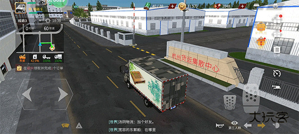 1、进入卡车人生手游,右侧分别是订单,接收,并完成任务,右边加速减速,左边控制方向,右下的小眼睛自动回正;