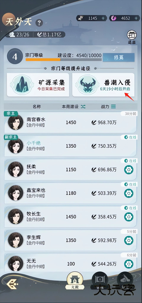 1、玩家需要先加入宗门,活动开始前玩家需要先进行报名,每周六20:00-20:30活动开启。