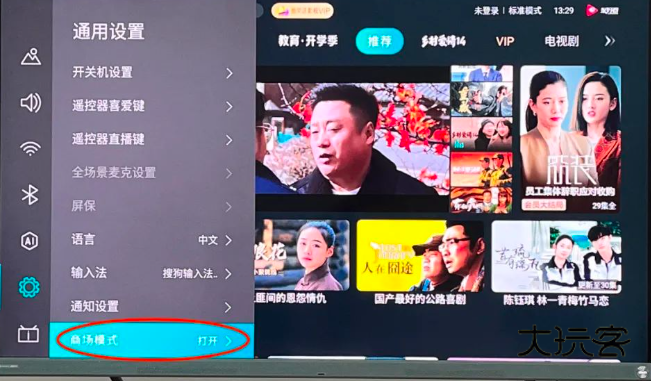 2、打开海信电视【设置】--【通用设置】--【商场模式】,将商场模式开启