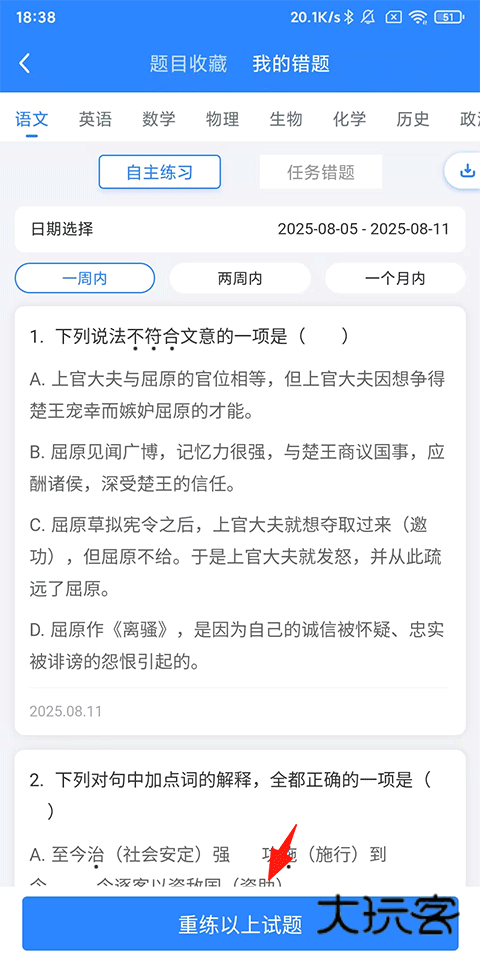3、开始【错题重练】。