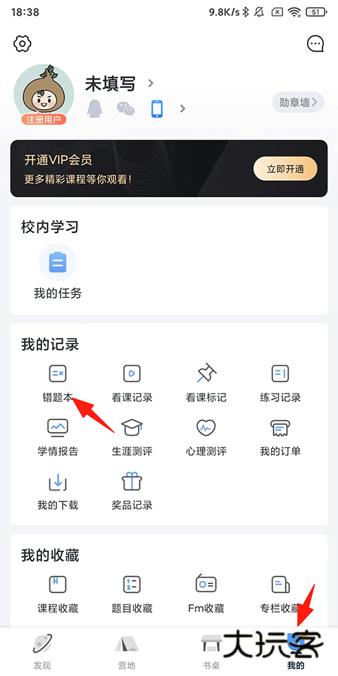 1、进入app,点击【我的】-【错题本】(目前只支持对错题进行重做/重练);