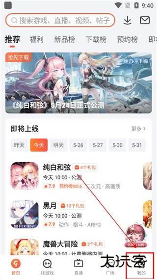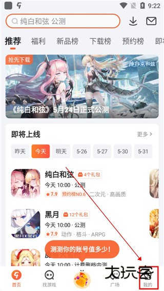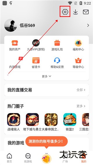 1、在本站下载九游手游平台,点击我的按钮;