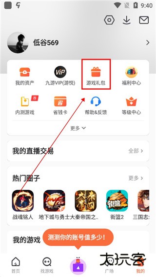 3、在个人中心中找到游戏礼包。