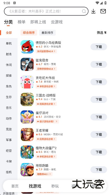 2、在找游戏版区,用户是能够根据分类查找各类好玩的游戏的