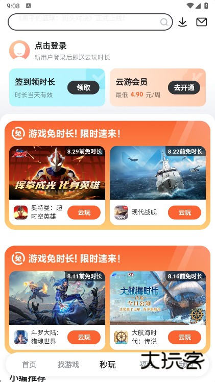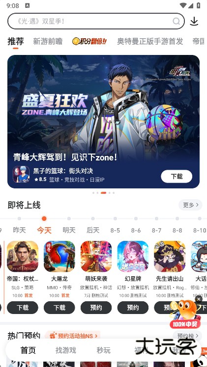 4、九游这款游戏盒子同时也是支持线上游玩哦,直接点击秒完即可