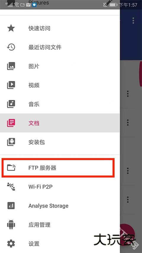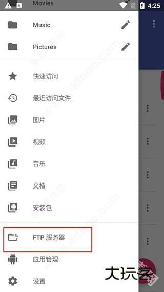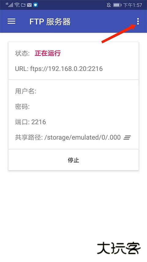3、进入FTP服务器界面,选择右上角【三个点】图标,