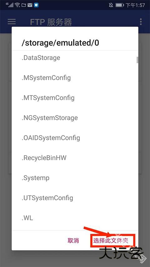 5、进入到文件夹选择界面,选择需要传送的文件所在的目录,点击右下角选择此文件夹,