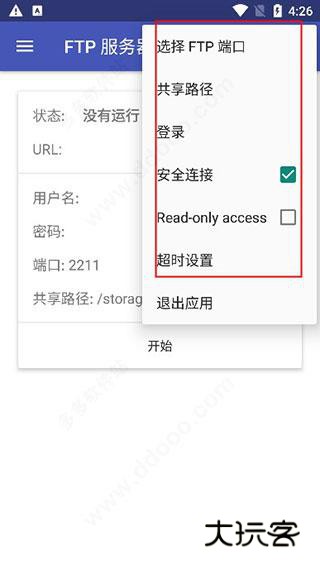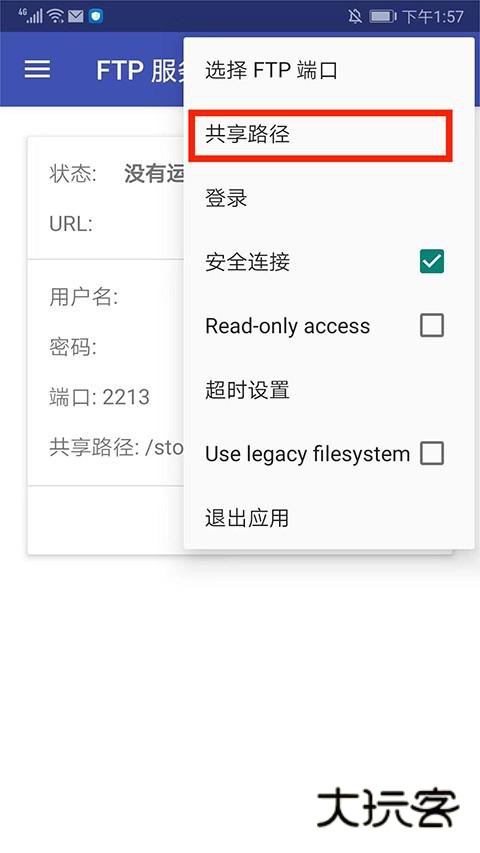 4、要是你想确保自己传输的安全性,还可以点击右上角,设置FTP端口、文件共享路径、登入密码等等。