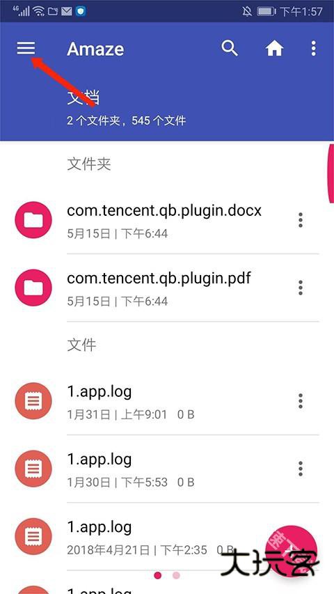 1、打开amaze,进入应用主界面,选择左上角【三条横】图标,