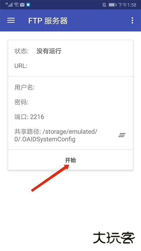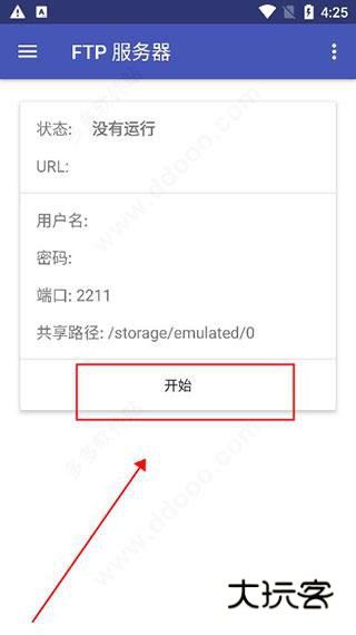 2、在这里,大家可以看见用户名、密码、端口、共享路径等信息,确定无误后选择开始。
