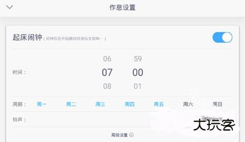 3、点击下方的高级设置,可以设置手机震动、音量、小睡时间以及浅睡唤醒了。