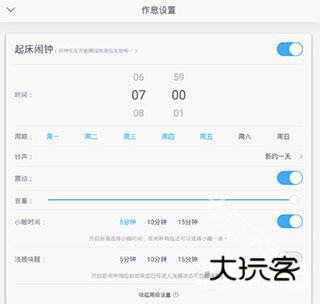 2、进入页面之后就可以对闹钟的时间、周期以及铃声进行设置了;