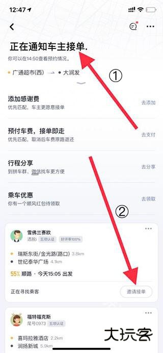 5、确认完毕后等待车主接单,或者可以点下车主右侧邀请接单。