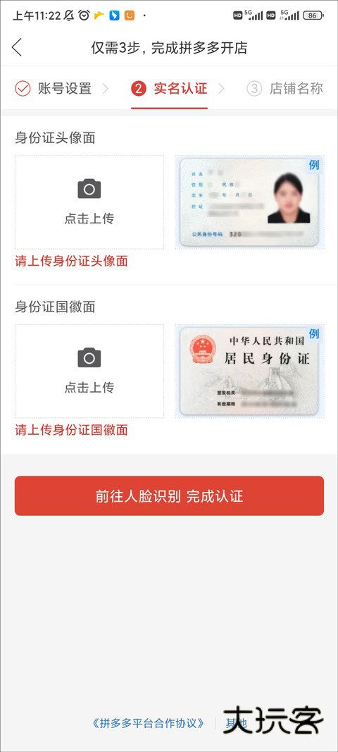 6、设置完密码后,即可进行实名认证,以及店铺的名称、店铺类型、主营类目的设定,且还需要根据页面提示正确填写您的入驻信息、上传相关资质。