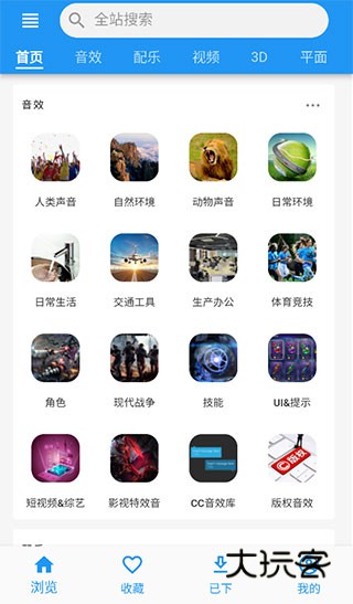 2、可以直接在顶部的搜索框搜索想要的资源,也可以滑动查看其他分类,查找更全面。