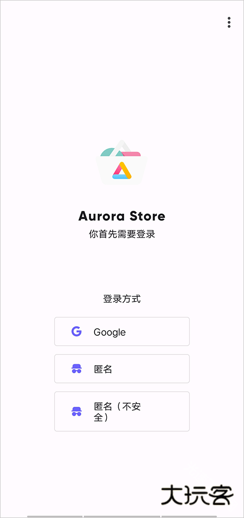 1、打开应用后,首先需要登录,有三种登录方式Google、匿名、匿名(不安全);