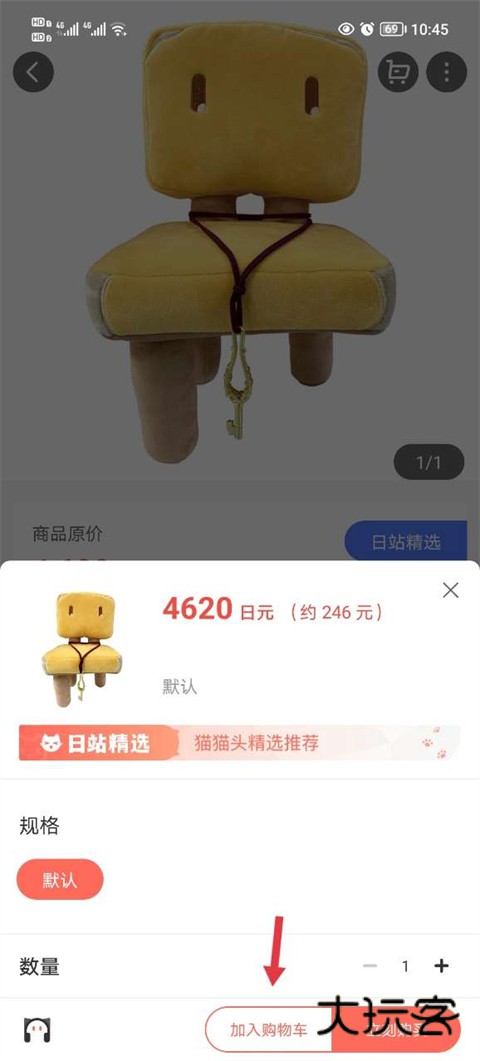 1、进入到商品页面,可以点击右下角的加入购物车选项。