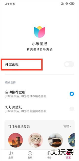 4、找到“开启画报”后,点击旁边的“开启键”画报就开启成功了