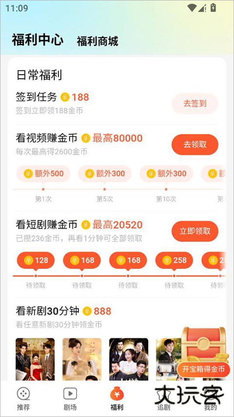 8、金币福利:签到看剧即可攒金币,看剧同时还能赚钱,乐趣与收益双丰收