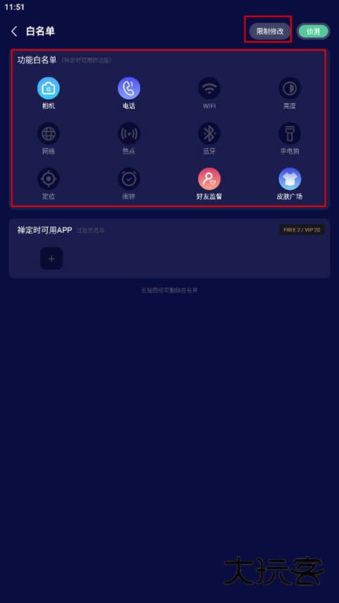 3、如果想要添加的应用不在列表上,可以点击限制修改,不过此功能需要开通会员,会员特权如下。