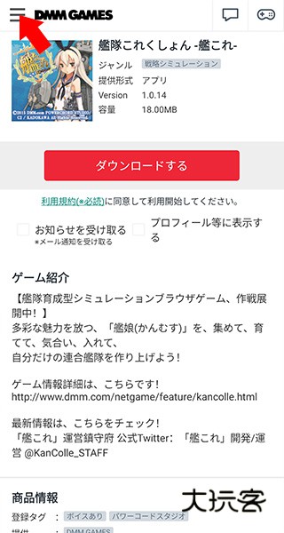 1、下载好DMMGames,运行软件,点击左上角的三条横杠按钮;