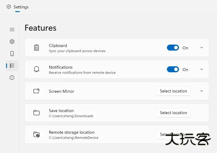 8、投屏控制目前还没有看到直接连接的办法,要等作者后续继续完善,另外需要注意的是,在不使用卸载的时候,注意把这个默认同步目录也删除了,不然可能会在电脑里残留一些文件。