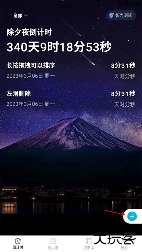 1、进入app的主界面,可以看到有2个倒计时,我们点击右下角的加号
