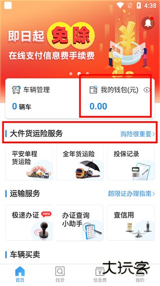 2、注册成功后,大家可以在首页大件货运险服务、运输服务等,选择自己需要的点进去即可。