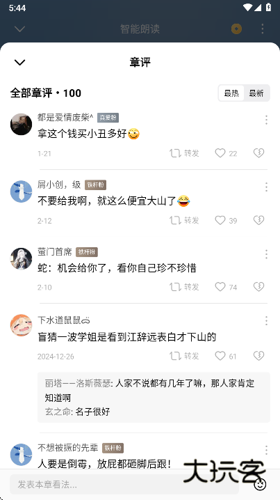 3、在阅读界面中,找到并点击评论区入口