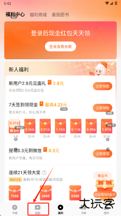 1、打开软件点击底部的短剧