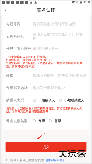 2、在实名认证页面里输入个人和企业的相关信息,最后点击“提交”就可以了,等系统审核通过后就认证成功了。
