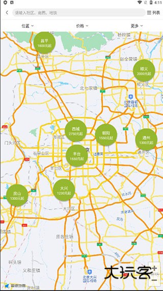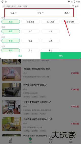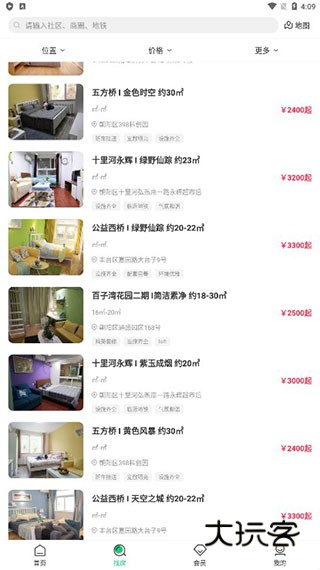 2、可以进行位置、价格等筛选,满足不同的租房需求;