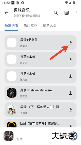 2、例如搜索出来歌曲后就可以点击旁边的下载按钮