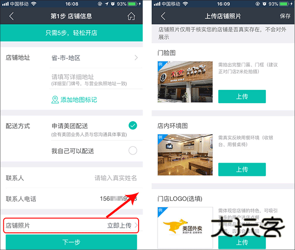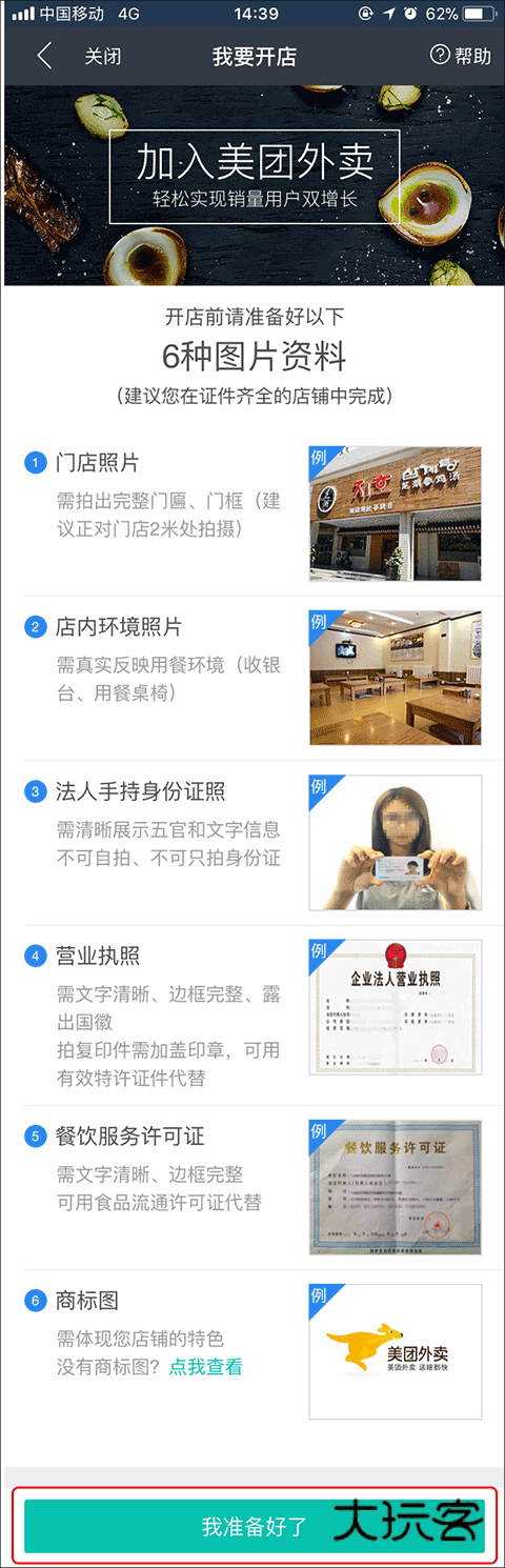 4、根据页面提示上传美团外卖开店所需照片凭证。