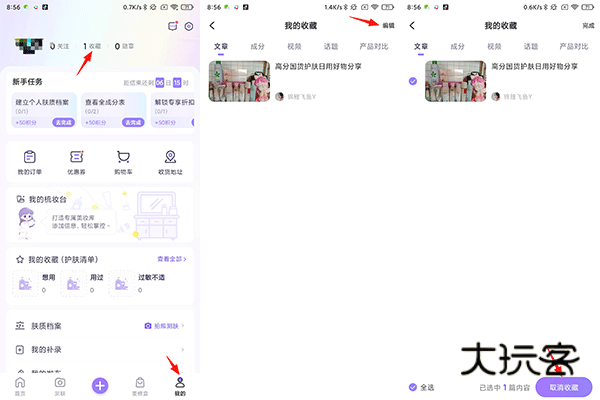 1、打开美丽修行APP,点击【我的】-【收藏】进入;