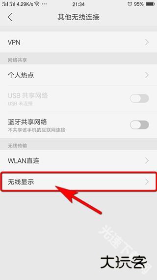 4、然后打开手机,找到设置-其他无线连接-无线显示(Micracast)