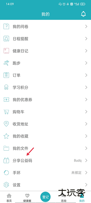 5、往下翻就会看到一个分享公益码,只要注册了账号并登录进来,就会得到一个公益码的。