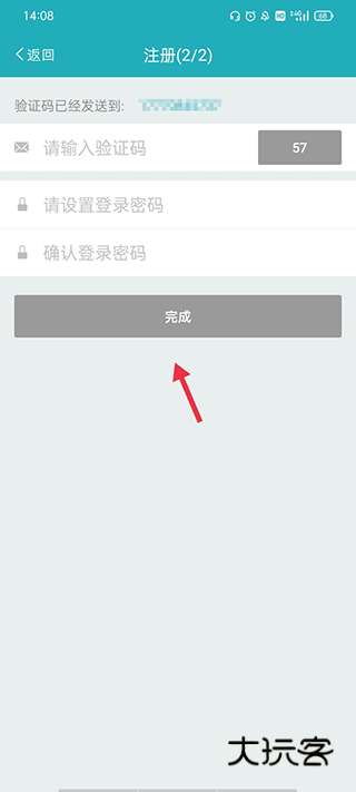 3、输入验证码,设置一个自己记得住的密码,点击完成。