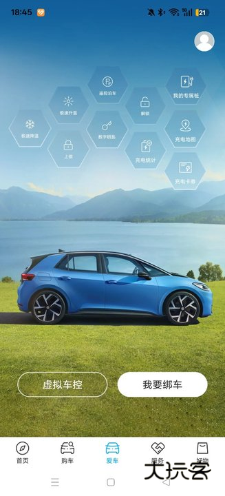 2、点击首页栏目区域内的爱车选项,点击我要绑车。