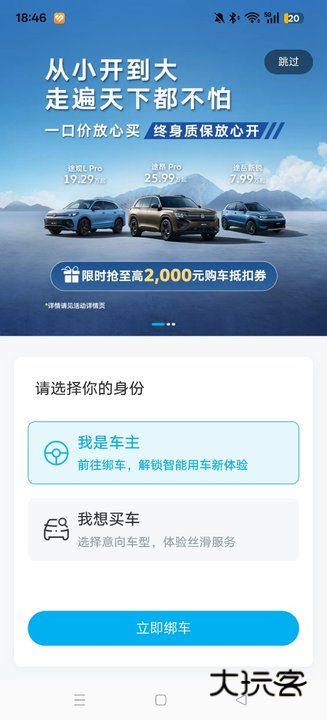 4、验证完毕后,确认绑定身份,是车主还是想要买车,不同的身份绑定区别也是各有所不同。
