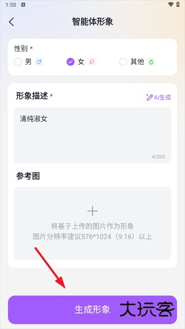 3、还可以自定义上传参考图哦,然后点击“生成形象”。