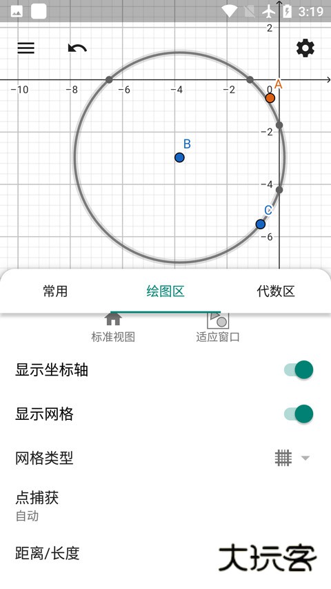 所有创建的对象的表示形式 (即坐标,方程式) 均按作图顺序在代数区中列出。