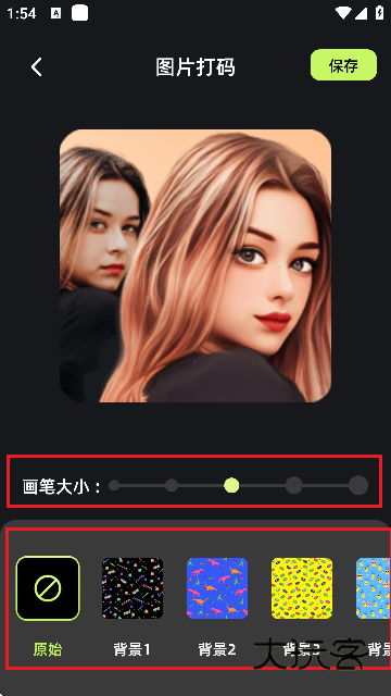 5、然后进入到图片编辑界面,如图所示。这里可以调整画笔大小,或者更换背景图