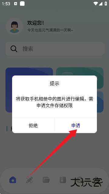 3、然后任意选择一项功能进行使用,但是使用之前需要授予软件必要的权限,如图所示