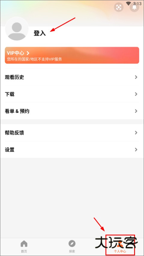 1、首先打开WeTV国际版,点击右下角“个人中心”,然后点击“登入”;