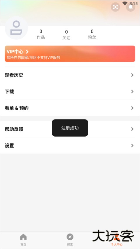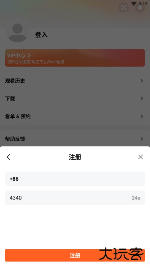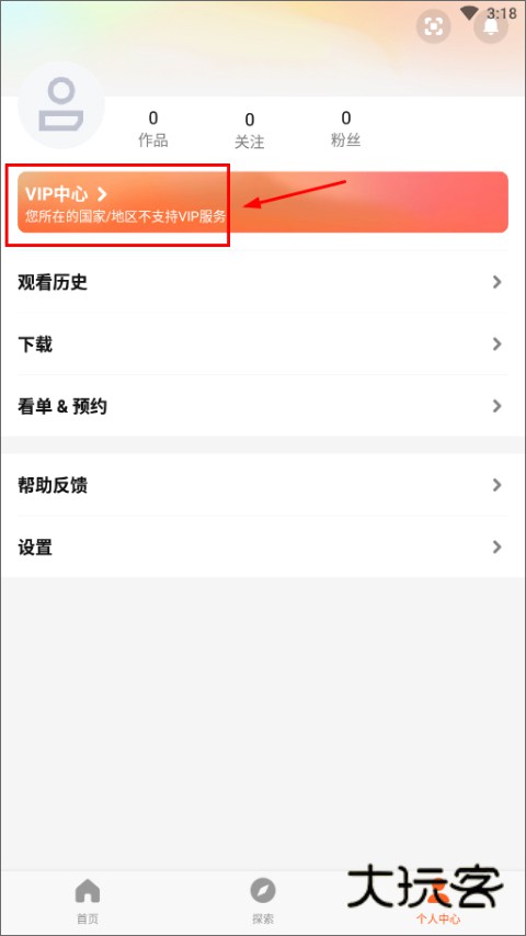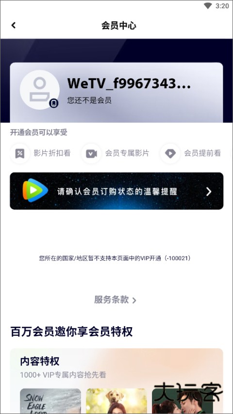 2、登录账号后可以看到“您所在的国家/地区不支持VIP服务”;