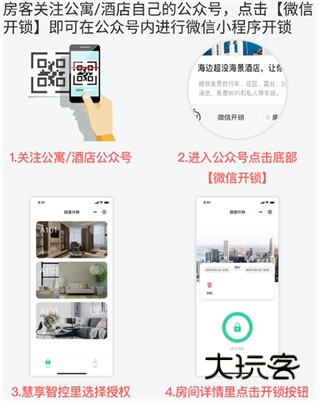 (需要公众号先关联小程序,才能实现关注酒店/公寓自己的公众号来进行微信开锁)