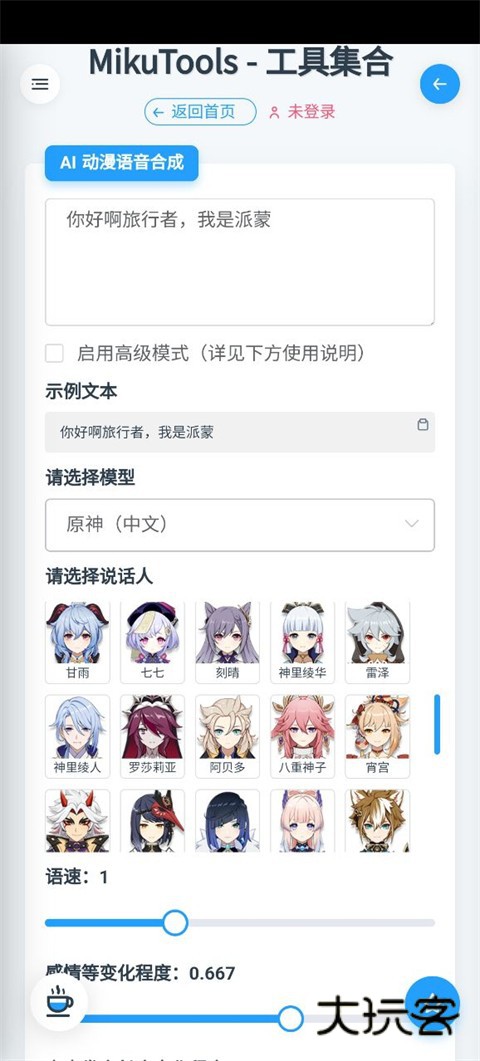 mikutools干净清爽的页面呈现,更多好用工具也都在不断更新并完善,对于喜好原神游戏的玩家在这里可以更好地进行设置,并旨在为用户提供最佳的工具使用服务哦,随时随地都能轻松合成并定制语音包哦。